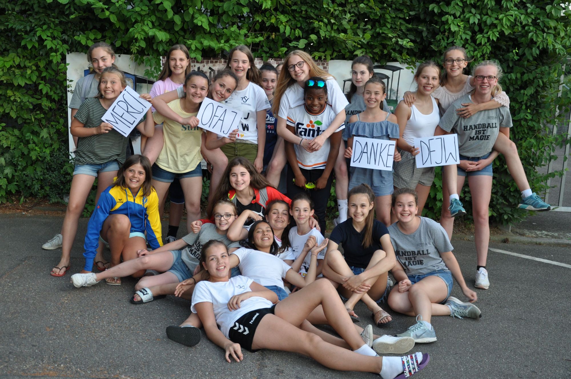 Bereits zum dritten Mal empfing der HSC Schmiden/Oeffingen im Rahmen eines DFJW-Jugendaustausches eine Gruppe junger Handballspielerinnen des ALS Plouagat. Diese hatten sich mit dem TGV auf die lange Reise aus dem 1100 km entfernten Guingamp nach Fellbach gemacht, um fünf abwechslungsreiche Tage in Schmiden, Oeffingen und Umgebung zu verbringen. Zu den Aktivitäten zählten unter anderem Zumba® bei Susi, Kennenlernspiele mit Sprachanimation, ein kleines Handballturnier, Training, ein Ausflug nach Tripsdrill am vielleicht heißesten Tag des Jahres (dafür aber ohne jegliche Wartezeit vor den Fahrtgeschäften!), eine Flughafenführung, Shopping, etc. Viel zu schnell vergingen die gemeinsamen Tage und am Ende gab es einen tränenreichen Abschied. Nun blicken alle erwartungsfroh auf das Wiedersehen Ende Oktober in der Bretagne.