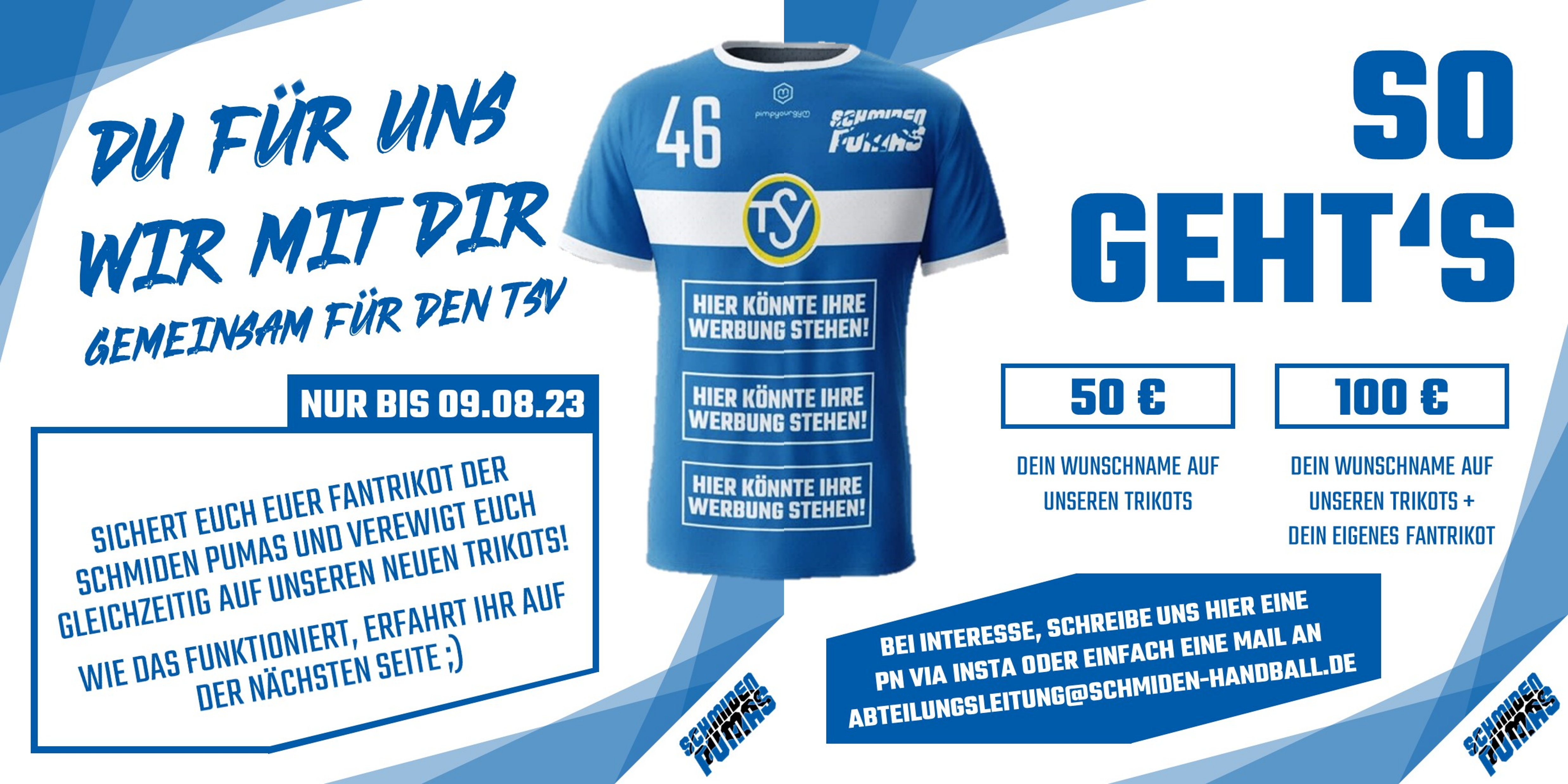 Sichert euch euer Fantrikot der Schmiden Pumas und verewigt euch gleichzeitig auf den neuen Trikots.