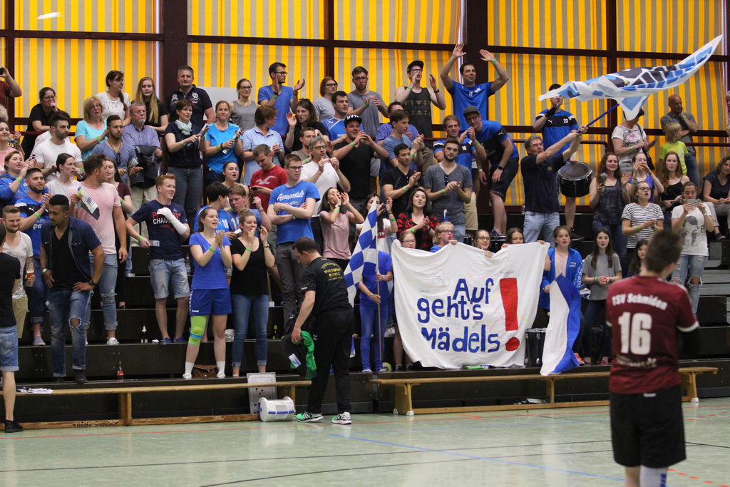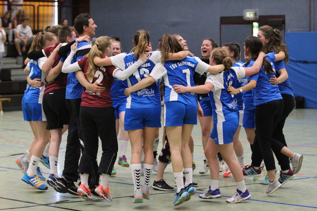 Die Handballerinnen des TSV Schmiden haben sich noch am Donnerstagabend mit mehreren Fahrzeugen auf ihre Saison-Abschlussfahrt gemacht. Das Gros des Teams ist noch bis Sonntagabend in den Vogesen in Frankreich. Sie werden sich dort auch ein wenig von der langen Runde erholen; und vom nervenaufreibenden Spiel beim TSV Köngen. Die Gäste lagen drei Minuten vor dem Spielende mit fünf Treffern zurück (22:27) – dieses Ergebnis hätte in keinem Fall zum Aufstieg gereicht. „Aber dann haben wir in Unterzahl gekämpft und noch mal alles reingelegt“, sagte Thomas Fürst. Mit Erfolg. Shefkije Kuqi erzielte 30 Sekunden vor Schluss den Treffer zum 26:28 und damit zum Aufstieg in die Württemberg-Liga. In der Abwehr sind die Gäste nicht so sicher gestanden wie zuletzt, zudem mussten sie frühzeitig den verletzungsbedingten Ausfall von Susanne Castor verkraften. Doch von alldem ließen sie sich nicht aus der Ruhe bringen und verkleinerten ihren Rückstand gerade noch so stark, um trotz Niederlage feiern zu können. Am Ende jubelten Thomas Fürst, sein Assistent Jochen Vogt und die Spielerinnen, die sich jetzt auf die kommende Saison in der Württemberg-Liga freuen dürfen.
