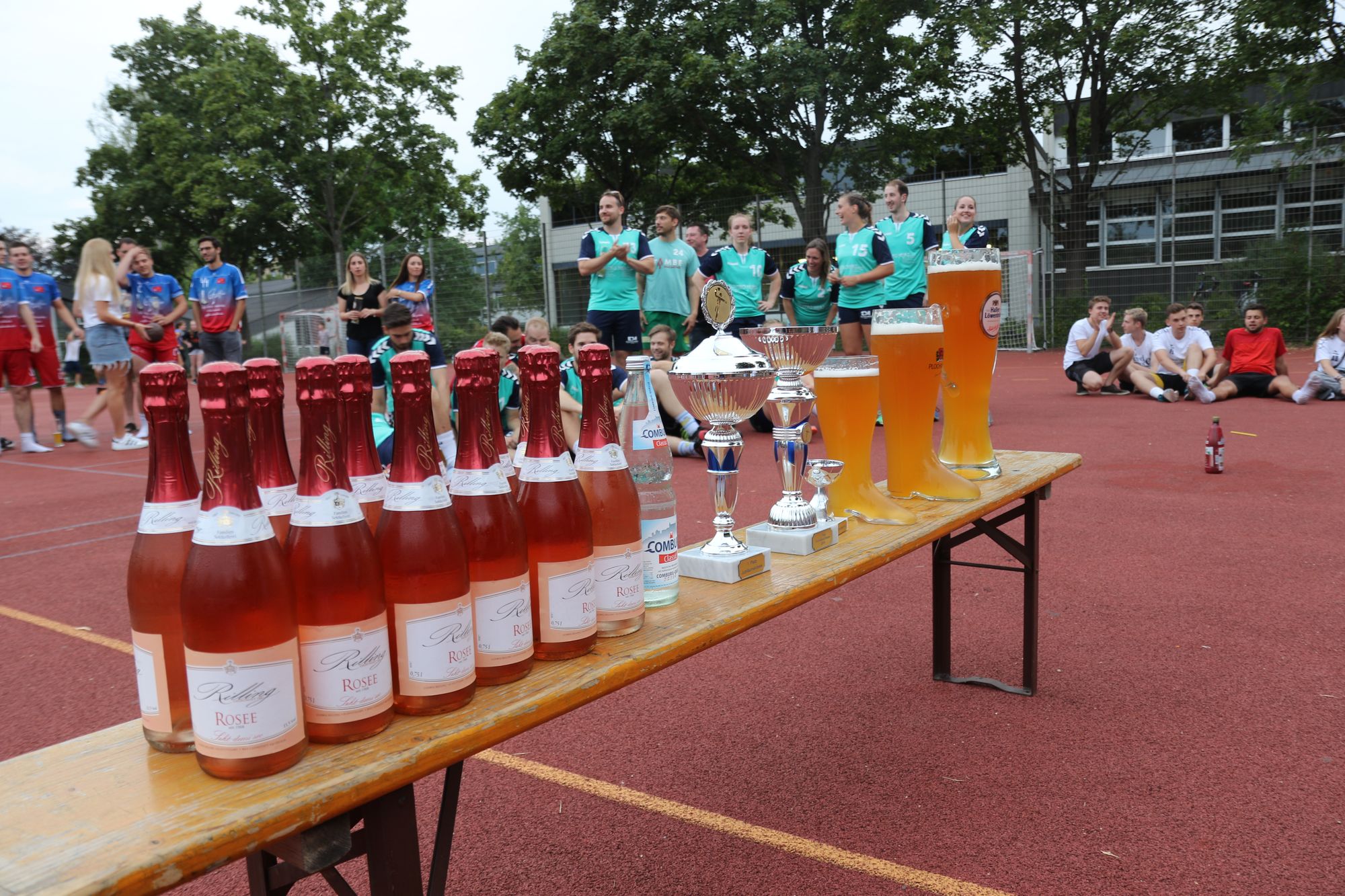 Zum Abschluss des Ortsturniers drängten die Ambitionen den Spaßaspekt zurück. Davor war mehr als eine Woche das „Ortse“, wie es liebevoll genannt wird, das Zentrum von sportlichen Leistungen und Geselligkeit. Feucht-fröhlich wurde es am Freitag aber nicht nur für die Erstplatzierten – für die Neulinge namens Flamongos, die direkt die Profi-Mixed-Klasse gewannen, für Juventus Urin, das mal wieder in der Jubiläumsklasse vorne lag, sowie für Perlweiss Oeffingen, den Gewinner der Mixed Klasse –, sondern für alle. Das Team, da sich Villa Samenbank nennt, hatte einen kleinen Swimming-Pool aufgebaut, in dem im Laufe des Abends fast jeder Abkühlung fand. „Einige, so heißt es gerüchtehalber, gehen ansonsten auch mal gemeinsam unter die Dusche“, sagte Jonas Conrady, der den traditionellen Mix aus ernsthaftem Wettstreit und fröhlichem Wetteifern mit seinem Bruder Rafael, Sebastian Bürkle und Fabian Engelhart organisiert hat.
