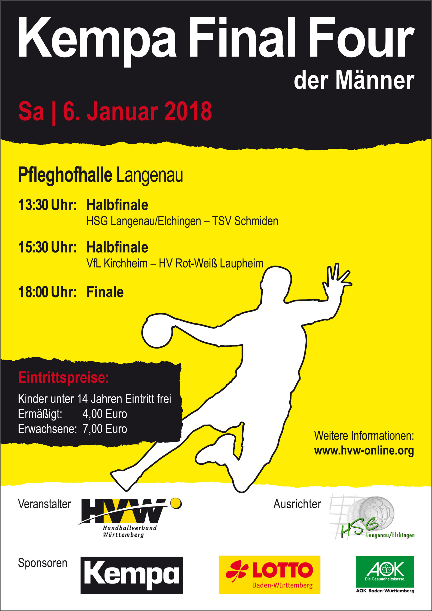 In dieser Runde war die Teilnahme am HVW-Pokal aber noch verpflichtend. Und am 6. Januar steigt in der Pfleghofhalle in Langenau das Final Four. Im Duell der Württemberg-Ligisten treffen der vom ehemaligen Göppinger Bundesligaspieler Hartwig Schenk trainierte Gastgeber HSG Langenau/Elchingen und der TSV Schmiden im ersten Halbfinale um 13.30 Uhr aufeinander. Danach stehen sich um 15.30 Uhr Außenseiter VfL Kirchheim aus der Bezirksliga Esslingen/Teck und der HV Rot-Weiß Laupheim (Württembergliga Nord) gegenüber. Das Endspiel ist für 18 Uhr vorgesehen.