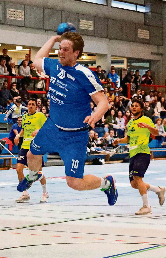 Dabei war der Ausgang der Begegnung lange ungewiss. Zwar führten die Gastgeber schnell mit 7:3 und zur Halbzeit mit 15:11, doch die Gäste des SV Leonberg/Eltingen gaben nicht auf. Sie kämpften sich zurück und schafften in der 53. Minute den 23:23-Ausgleich. Nach einer Auszeit erzielten aber Moritz Klenk, Fabian Baldreich und Simon Junker drei Tore nacheinander – die Führung hielt bis zum Schluss.